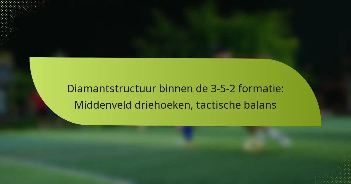 De diamantstructuur in de 3-5-2 formatie is een tactische benadering die zich richt op een centrale middenvelddiamant, die zowel defensieve kracht als offensieve veelzijdigheid biedt. Deze opstelling bevordert middenveldt driehoeken die de balbeweging en tactische balans verbeteren, waardoor teams het spel effectief kunnen beheersen en scoringskansen kunnen creëren.