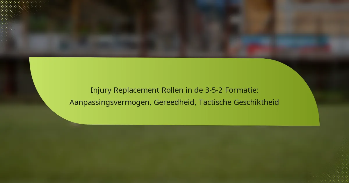 In de 3-5-2 formatie zijn de rollen voor vervangingen bij blessures essentieel voor het behoud van teamdynamiek en prestaties wanneer sleutelspelers niet beschikbaar zijn. Effectieve vervangers moeten de aanpassingsvermogen en tactisch inzicht bezitten om naadloos in de bestaande structuur te passen, zodat de strategie van het team samenhangend blijft. Door gebruik te maken van de veelzijdigheid van spelers en de communicatie te verbeteren, kunnen teams de uitdagingen die blessures met zich meebrengen navigeren en tegelijkertijd hun concurrentievoordeel behouden.